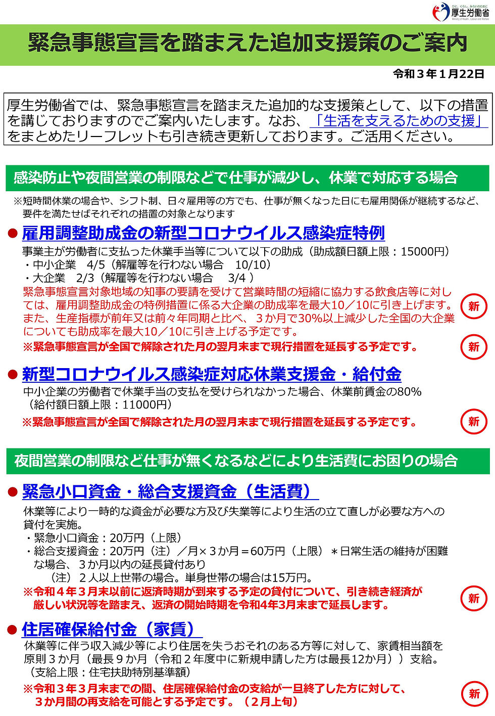 新型コロナウイルスの影響による厚生労働省の支援策について